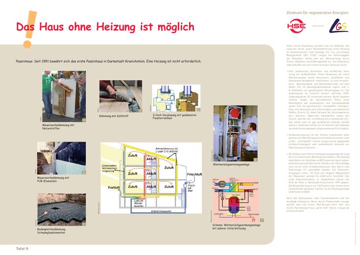 Die 17 Informationstafeln, die in den Gängen zum Zentrum für regenerative Energietechniken (Werkstattgebäude der LGS) angebracht sind, sind so gestaltet, dass die gewählte Text- und Bildgestaltung die Problematik und Vielfalt schülergerecht thematisiert. Somit können Schüler aller Schulformen und Jahrgänge ihr Wissen über diese Thematik selbst oder im Team erwerben. Leitfragen, die zu diesen Informationstafeln erstellt werden, unterstützen diesen pädagogisch-didaktischen Aspekt.