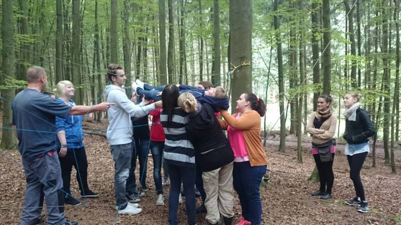 Weiter ging es mit ein paar Vertrauensspielen, welche auch einiges an Überwältigung und Vertrauen voraussetzten. Als Beispiel führe ich jetzt das Fallen vom Tisch in die Arme der Gruppe an.
