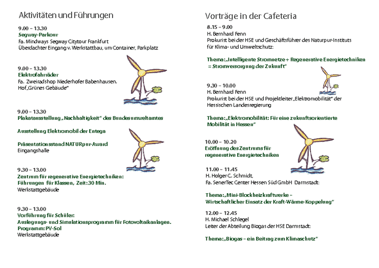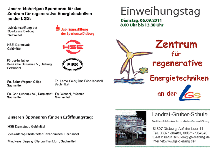 Am 6.09.2011 fand die offizielle Einweihung des „Zentrums für regenerative Energietechniken“ von 8:00 bis 13:00 Uhr statt. Es gab mehrere Vorträge, Ausstellungen und Aktivitäten (siehe folgenden Flyer).