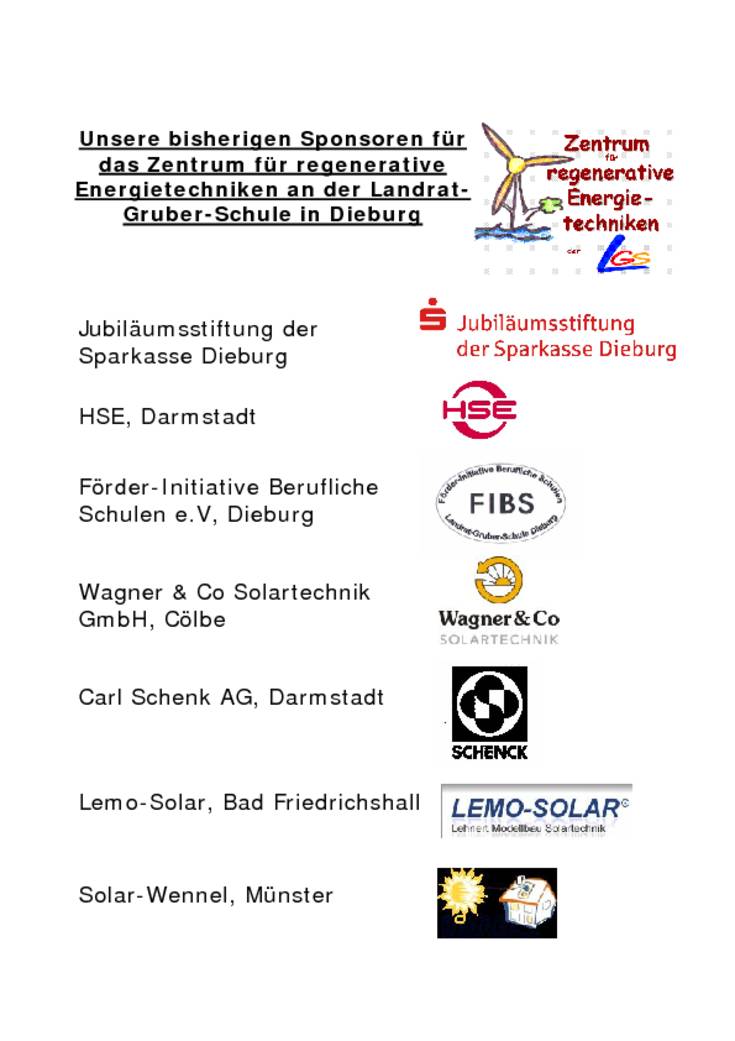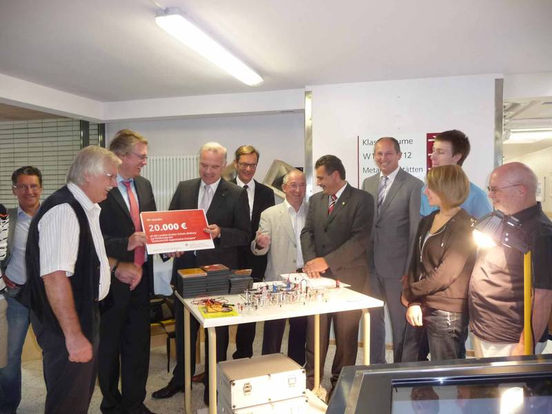 Am 16.08.2011 haben Landrat Schellhaas und der Vorstandsvorsitzende der Sparkasse Dieburg, Manfred Neßler, einen Scheck über € 20 000.- an den Leiter der Landrat-Gruber-Schule, Thomas Reinholz übergeben. Die Mittel fließen in den Aufbau des Zentrums für regenerative Energietechniken der Schule. Die offizielle Einweihung des Zentrums findet am 6.09.2011 statt.