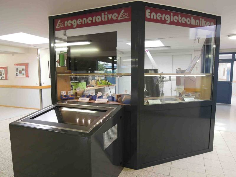 Allerdings fehlte bis dahin immer noch ein zentraler Ort, an dem all diese Arbeiten und Exponate ausgestellt und für alle Schüler unserer Schule zugänglich gemacht werden konnten. Ursprünglich geplant war ein Pavillon auf dem Pausenhof zwischen Atrium und Cafeteria, was allerdings aus baurechtlichen Gründen nicht umsetzungsfähig war. Bei der Sanierung des Werkstattgebäudes 2007 wurde dort ein verglaster Innenraum für das Zentrum für regenerative Energietechnik fertig gestellt. Die langen Gänge zu diesem Zentrum eigneten sich hervorragend, die Informationstafeln zu diesen Themen dort anzubringen.